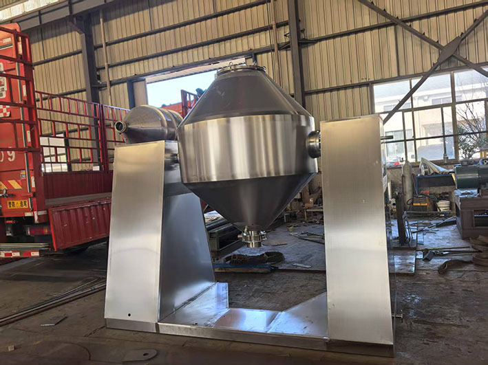 攪拌回轉:雙錐形罐體按 30-45° 優化設計,以 5-15r/min 的可調轉速回轉,物料在罐內做 “翻動 - 跌落 - 混合” 循環運動,與罐壁接觸面積最da化,避免局部堆積。