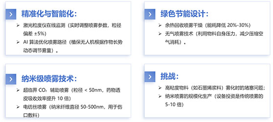 智能化噴霧設備正通過技術融合、場景創新與生態重構,推動傳統制造業向智能化、綠色化、服務化轉型。其核心價值不僅在于提升生產效率與產品質量,更在于通過精準控制與資源優化。未來,隨著納米技術、量子傳感與生物啟發式算法的突破,噴霧設備將進一步拓展至太空探索、生物計算等前沿領域,成為連接物理界與生物界的橋梁,開啟智能制造與生命科學的新紀元。