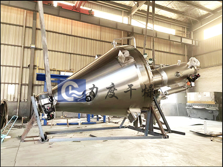高混合精度:可以達到較高的混合精度,即使在同批產品中混合不同密度和不同顆粒形狀的物料,也可以在錐形混合機中達到 所需的混合精度,在大批物料中添加很少量的物料這樣苛刻的工藝條件下,也可以在力度干燥生產的錐形螺帶真空干燥機內混合。
